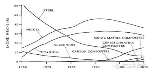 圖 8 航空發(fā)動(dòng)機(jī)用不同材料用量的變化情況